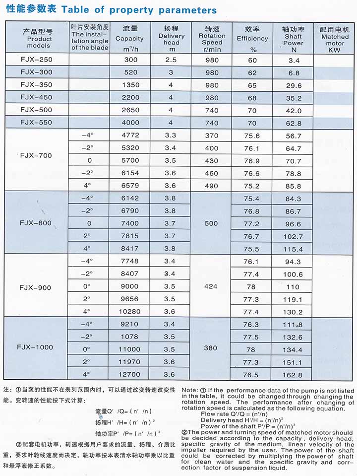 FJX型系列蒸發(fā)循環(huán)泵為大流量、低揚(yáng)程軸流泵,專供磷銨、磷酸、真空制鹽、氧化鋁、燒堿、輕工等行業(yè)中蒸發(fā)器的強(qiáng)制循環(huán)用,也可作結(jié)晶器、反應(yīng)器的循環(huán)泵。 性能參數(shù): 流量范圍:300~12000m3/h 揚(yáng)程范圍:2~4m 工作壓力:1MPa 工作溫度:≤170℃ 流:訂貨時用戶應(yīng)提供詳細(xì)的數(shù)據(jù)表,由我公司根據(jù)要求的流量、揚(yáng)程、介質(zhì)特性,推薦合理的泵型號。