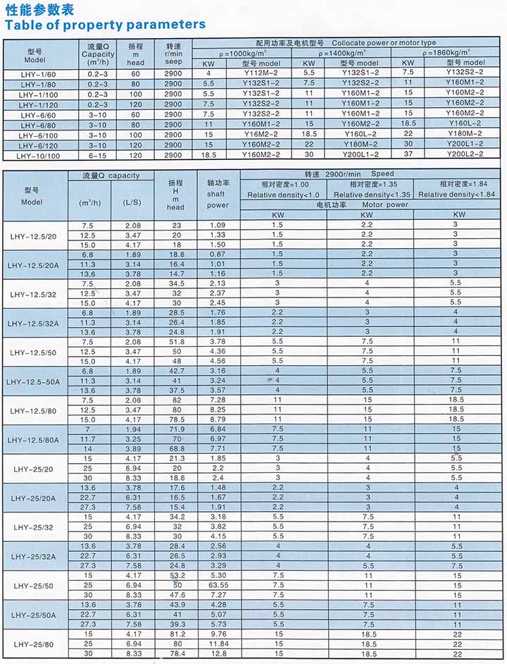 LHY系列立式液硫泵適用于各種規模的硫磺制酸工藝流程中輸送130~158℃的液體硫磺。也適用于其他需要小流量、高揚程的化工流程。LHY系列立式液硫泵由于揚程特高、流量特小、比轉速數特低,已不可能用離心泵的型式來達到性能要求,用旋渦泵則在運轉過程中性能不穩定,故采用全新的技術進行水力設計,具有普通離心泵,旋渦泵所不具備的特殊優點。該系列泵流量在很大范圍內變化時,泵的揚程始終保持不變。這一特點特別適合于要求泵具有自調特性的化工流程。