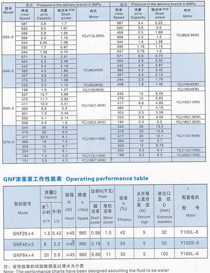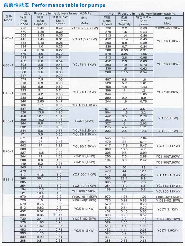 概述: G、GNF型螺桿泵可用于輸送中性或腐蝕性的液體,潔凈的或磨損性的液體,含有氣體或易產生氣泡的液體,高粘度或低粘度液體,包括含有纖維和固體物質的液體。主要應用于食品業、紡織業、造紙業、石油業、化工業、堿、鹽業、造船業、建筑業、核工業、冶金與礦山等行業。 工作原理: 單螺桿泵是-種內嚙合的密閉式螺桿泵,屬轉子式容積泵。主要工作部件由具有雙頭螺旋空腔的定子和在定子孔內與其嚙合的單頭螺旋螺桿--轉子組成。當輸入軸通過萬向節驅動轉子繞定子作行星回轉時,定子--轉子付就連續地嚙合形成密閉腔,這些密閉腔容積不變地作勻速軸向轉動,把輸送介質從吸入端經流過定子--轉子付輸送至壓出端,吸入密閉腔內的介質流過定子而不被攪動和破壞。因此,可以輸送含有堅硬磨損性雜質及固體顆粒的介質和粘稠的液體。